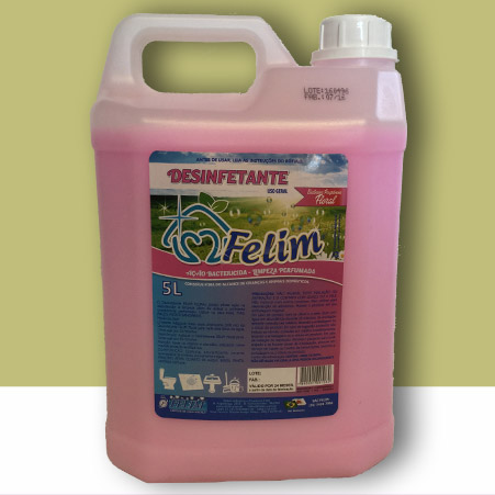 O Desinfetante FELIM possui eficaz ação na desinfecção e limpeza, além de deixar o ambiente suavemente perfumado. Pode ser utilizado nos mais variados locais: pias, ralos, pisos e sanitários. É apresentado nas versões eucalipto, floral, lavanda, pinho, roxinho, sensação e talco.