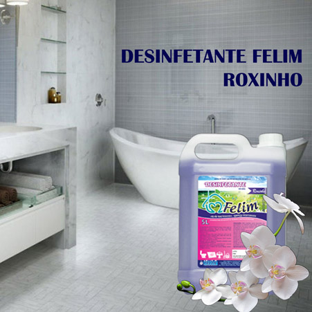 O Desinfetante FELIM possui eficaz ação na desinfecção e limpeza, além de deixar o ambiente suavemente perfumado. Pode ser utilizado nos mais variados locais: pias, ralos, pisos e sanitários. É apresentado nas versões eucalipto, floral, lavanda, pinho, roxinho, sensação e talco.