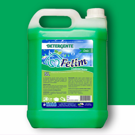 O Detergente FELIM possui uma fórmula equilibrada, Com alto poder de remoção de sujeiras. Ideal para lavagem de louças, talheres e utensílios domésticos substituindo o sabão.