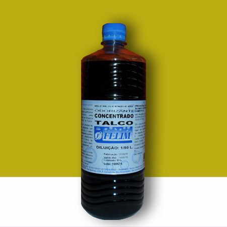 O Odorizante Concentrado Talco FELIM é utilizado para perfumar ambientes, deixando uma agradável sensação de limpeza e um suave cheirinho característico. É um produto de alta concentração, podendo ser diluído na proporção de 1 parte de produto para 50 de água ou um copo americano (200 mL) para 10 litros de água. Se desejar o cheiro mais forte, aumentar a quantidade de produto na diluição.