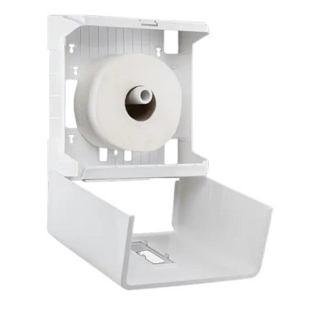 Ideal para banheiros e lavabos com alta circulação de pessoas. Comporta rolos de 300 m. Proporciona maior intervalo de troca, além de proteger o rolo contra umidade.